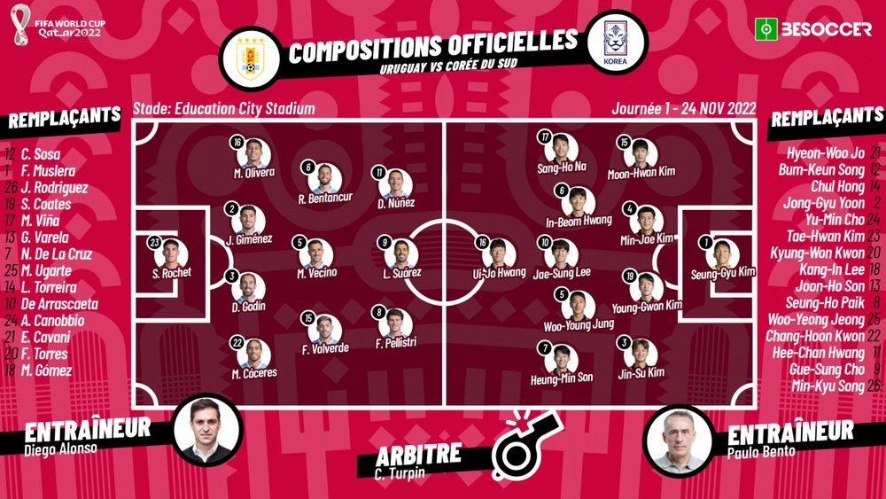 Bienvenue dans ce direct consacré à la rencontre entre lUruguay et la Corée du Sud pour le compte de la Coupe du monde 2022.